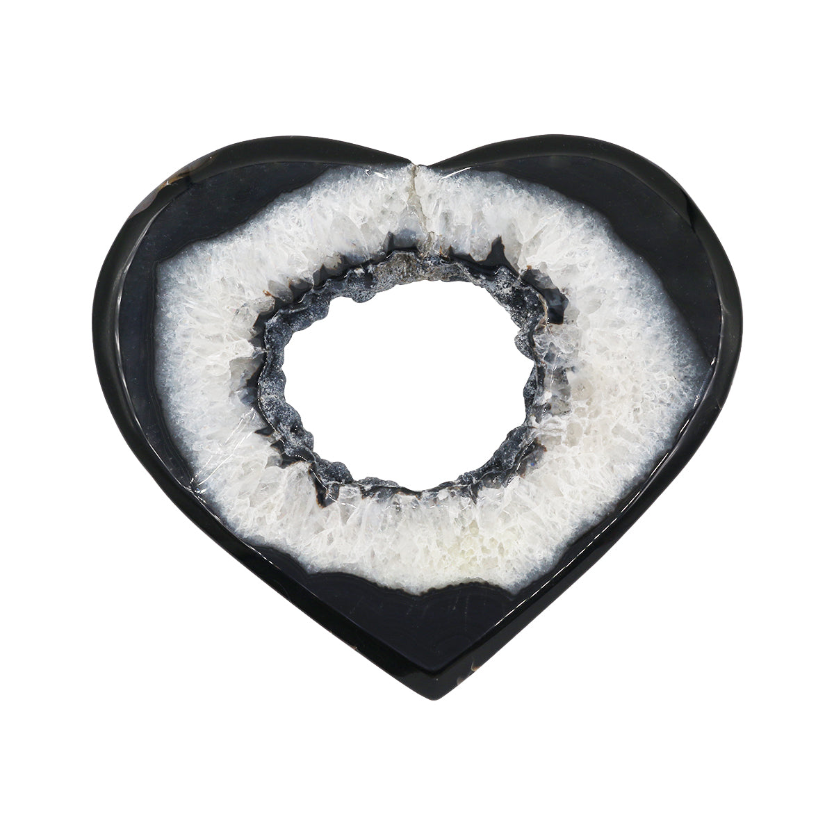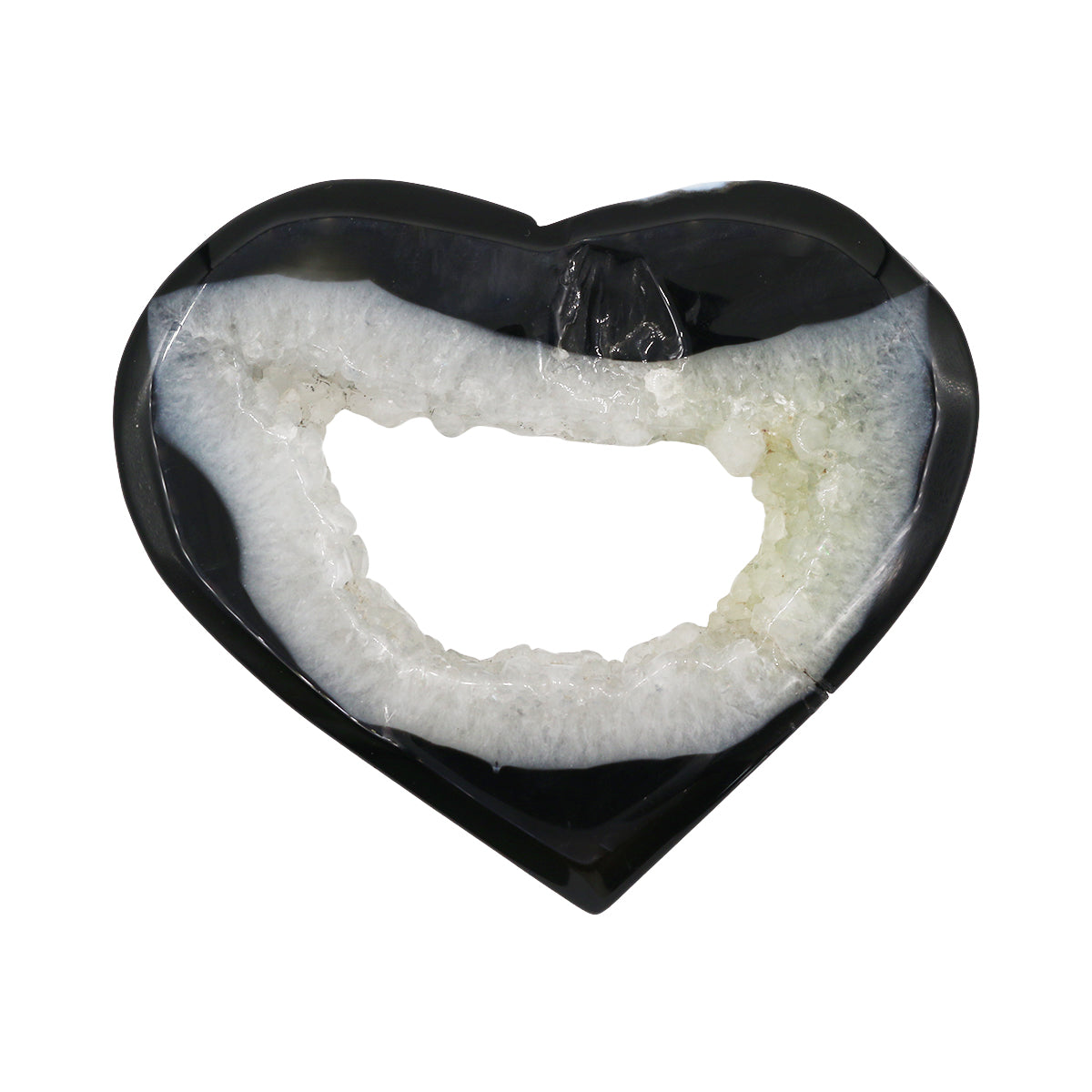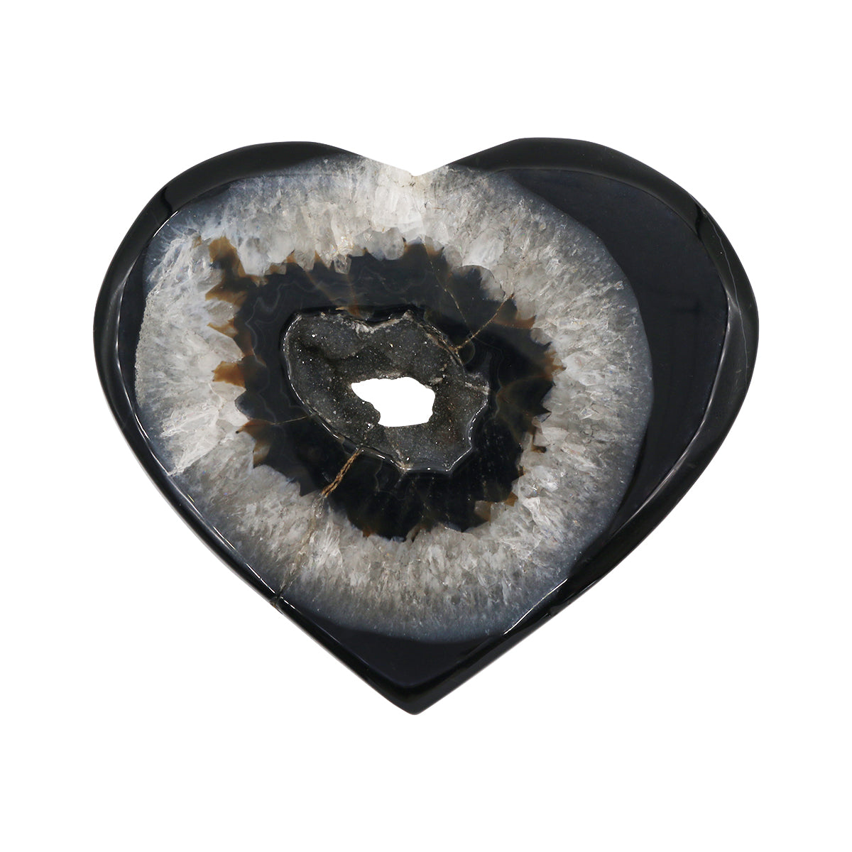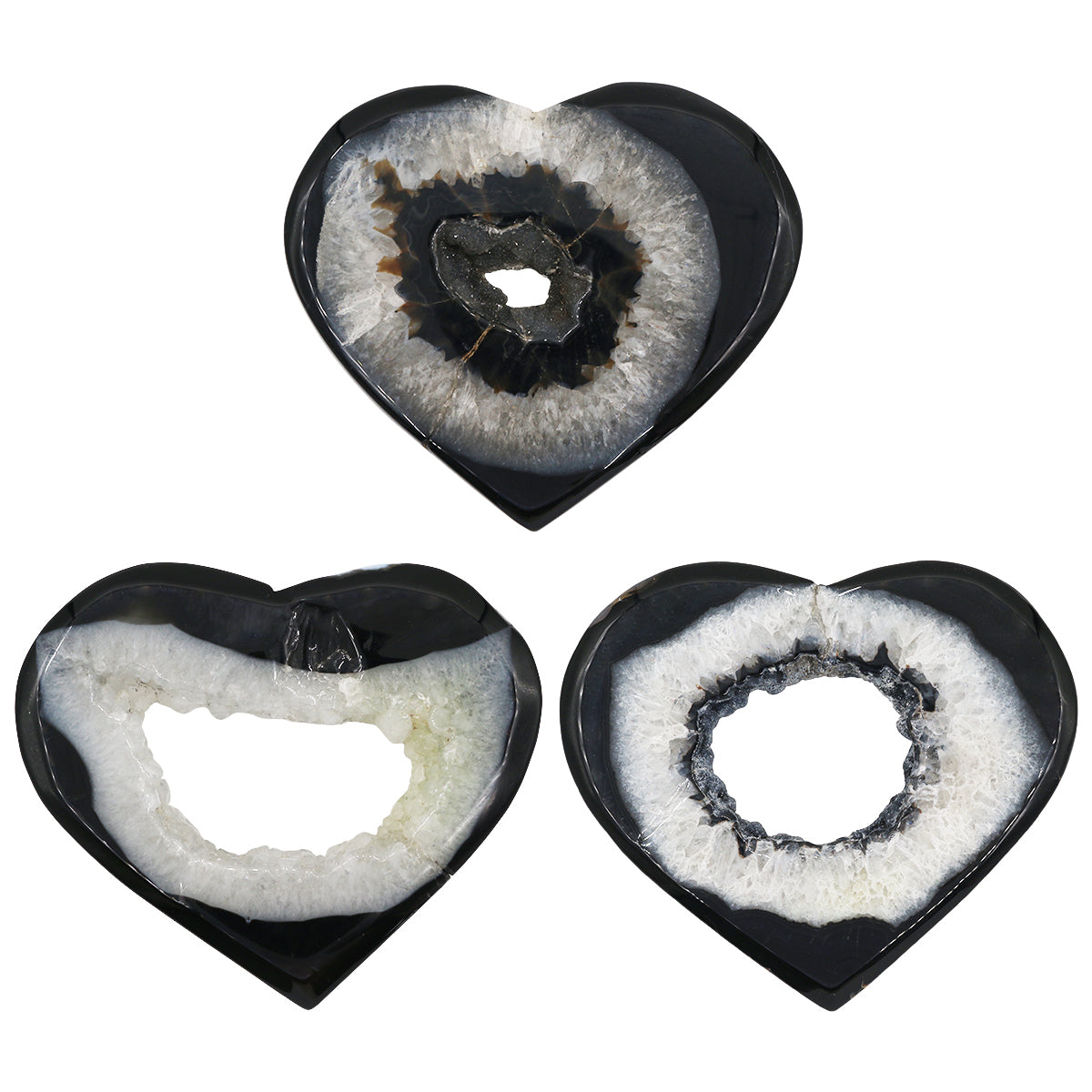 Druzy Black Agate heart stone, 4-5" wide, 3.4-4.5" high, around 120-250g/pc. Sale by kg.