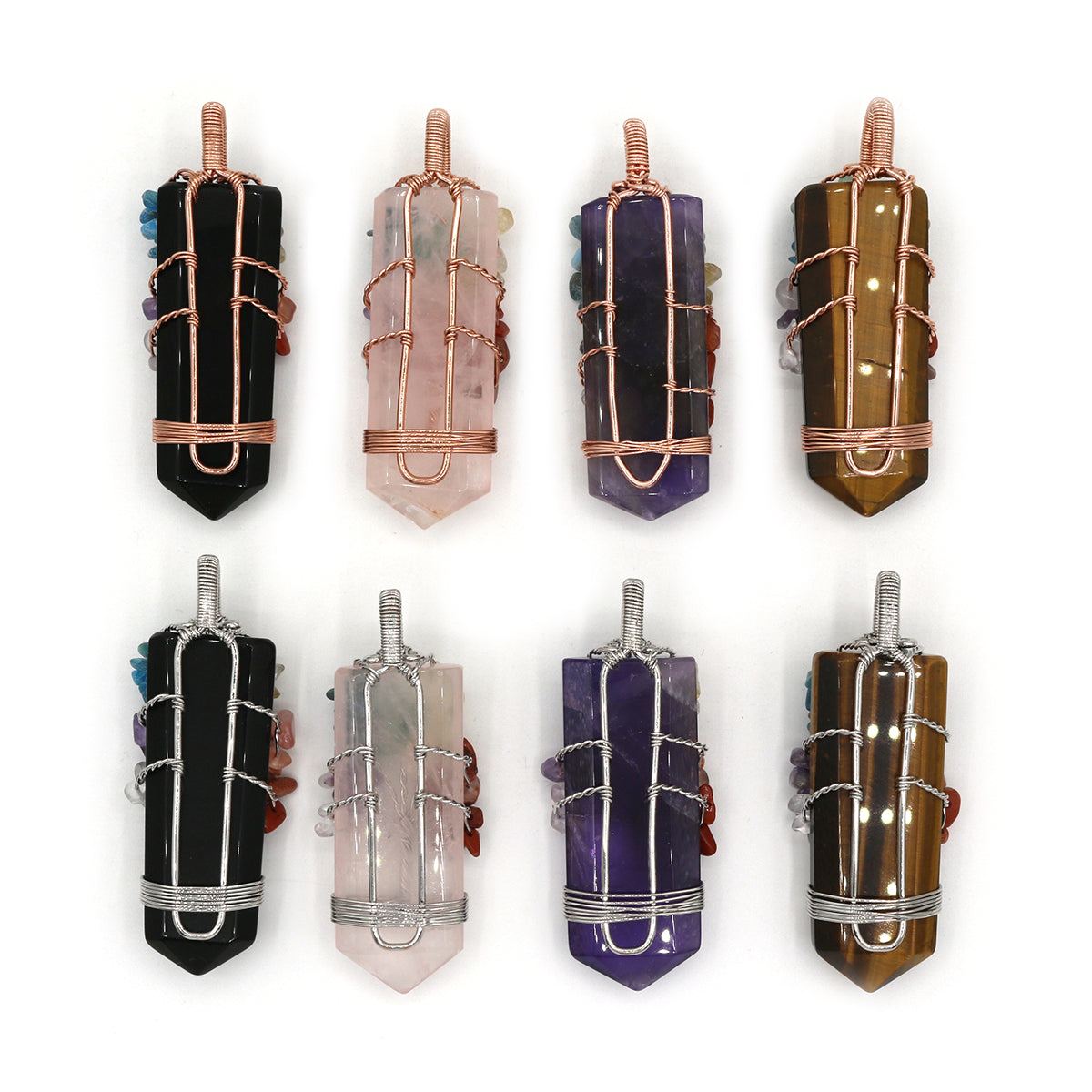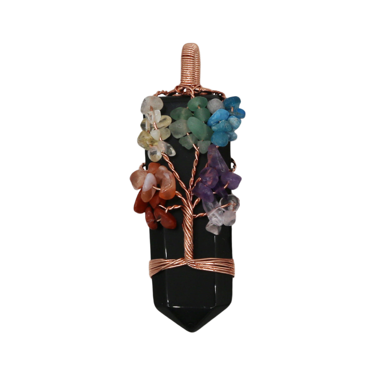Rose quartz/tiger eye/black agate /amethyst gemstone point with 7 charka tree with silver and copper color metal