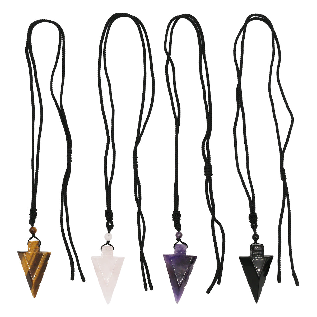 Rose quartz/tiger eye/black agate /amethyst gemstone triangle pendant total 20", stone: 1.95" tall, 1.12" wide, around 19g/pc