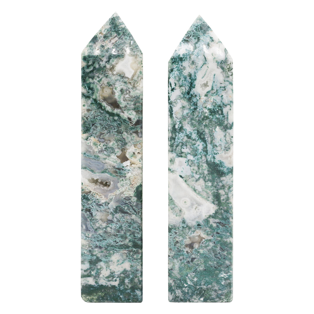 Big moss agate Obelisks, around 1.6" wide, 7.5" tall, 520g/pc, sale by kg