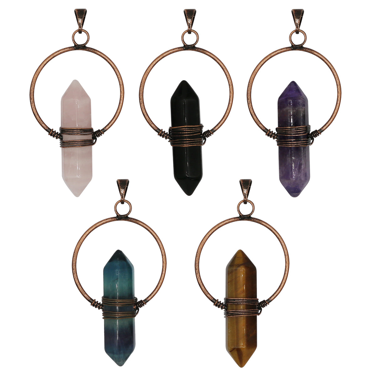 Rose quartz/tiger eye/black agate /amethyst/fluorite gemstone double point pendant with silver and copper color metal