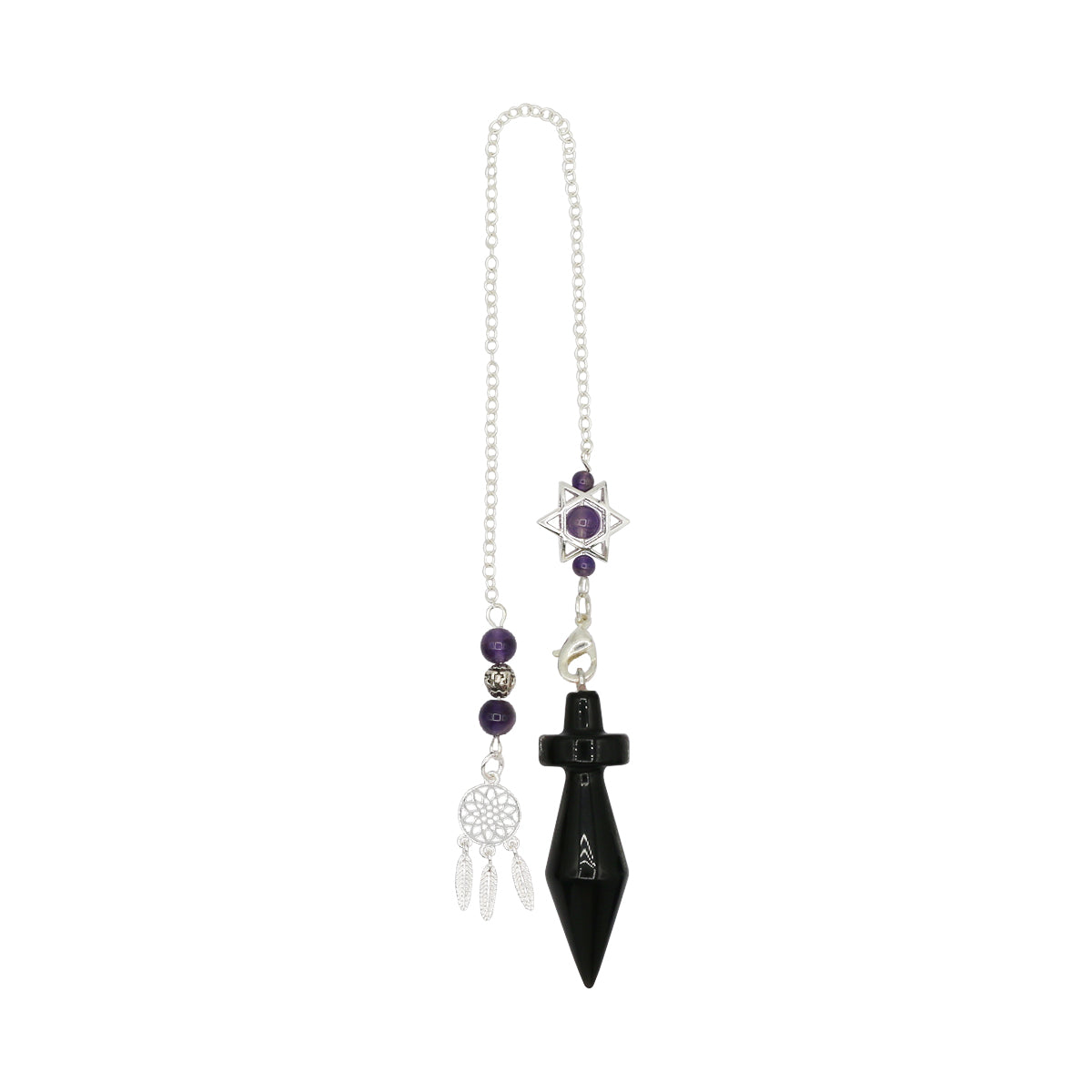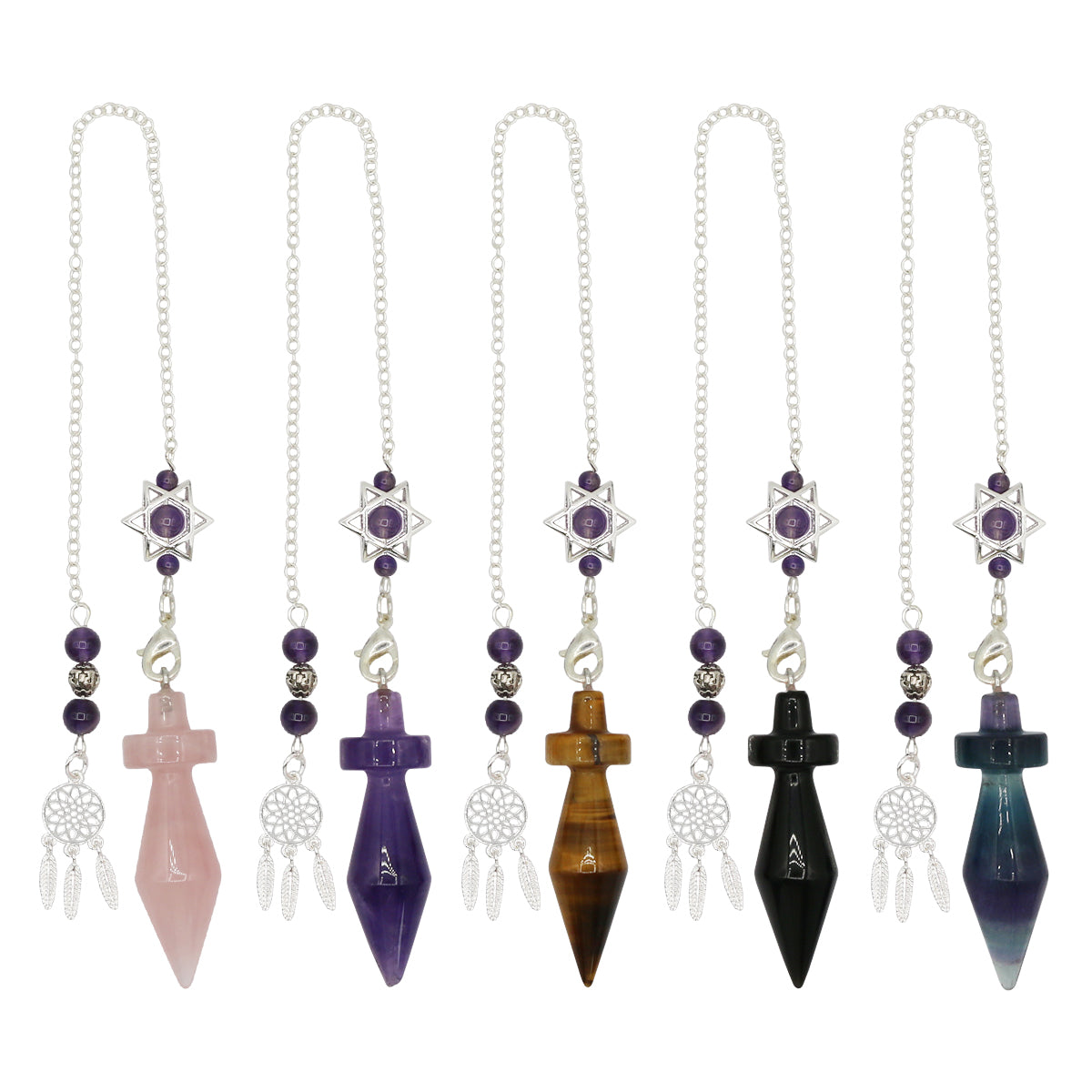 Rose quartz/tiger eye/black agate/amethyst/fluorite gemstone pendulum with silver color metal