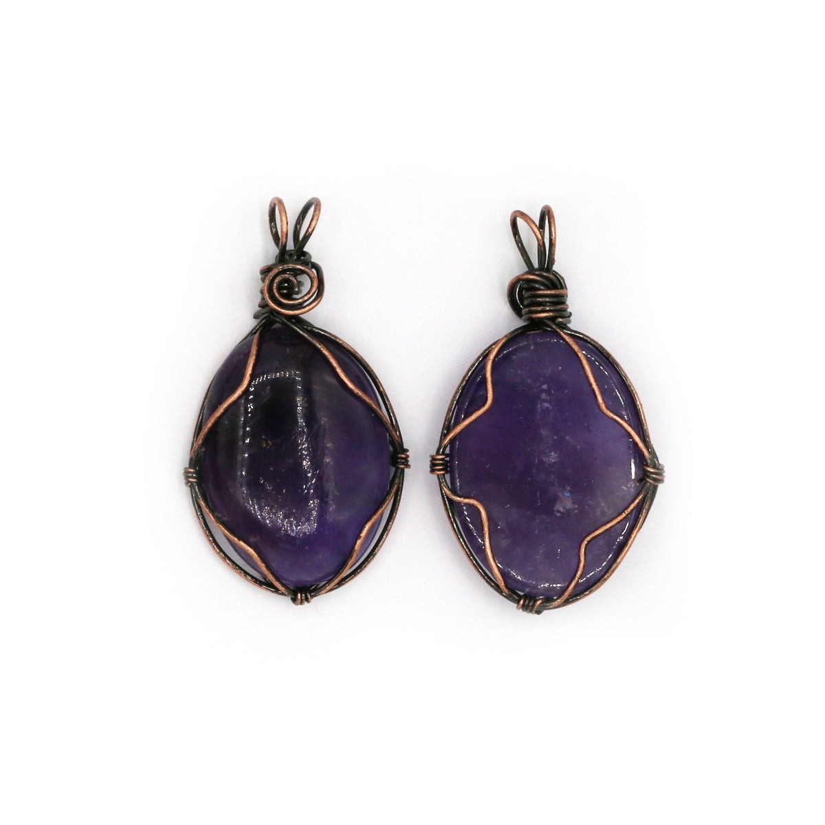 Rose quartz/tiger eye/black agate /amethyst/fluorite/green aventurine gemstone pendant with silver and copper color metal