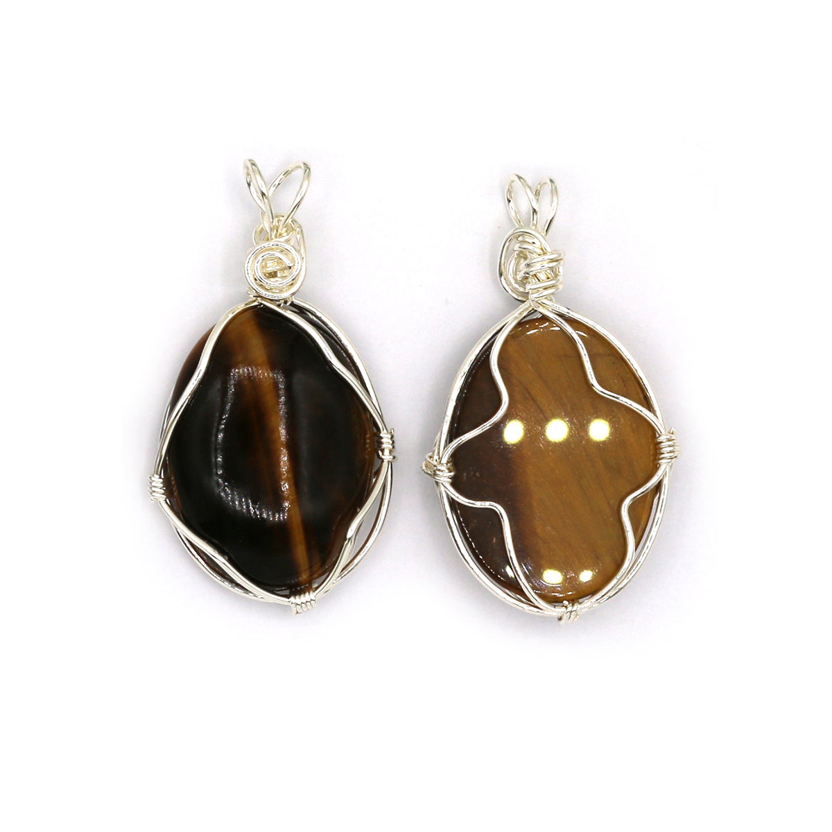 Rose quartz/tiger eye/black agate /amethyst/fluorite/green aventurine gemstone pendant with silver and copper color metal , 1.74" tall, 1.02" wide, around 12g/pc