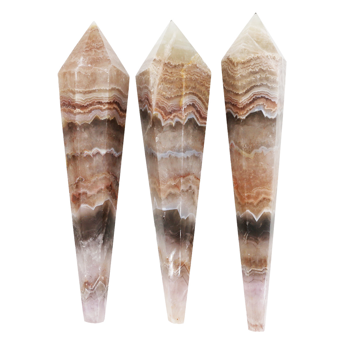 Amethyst and agate wands. 1.5" wide, 6" tall, around 170g/pc. Sale by kg