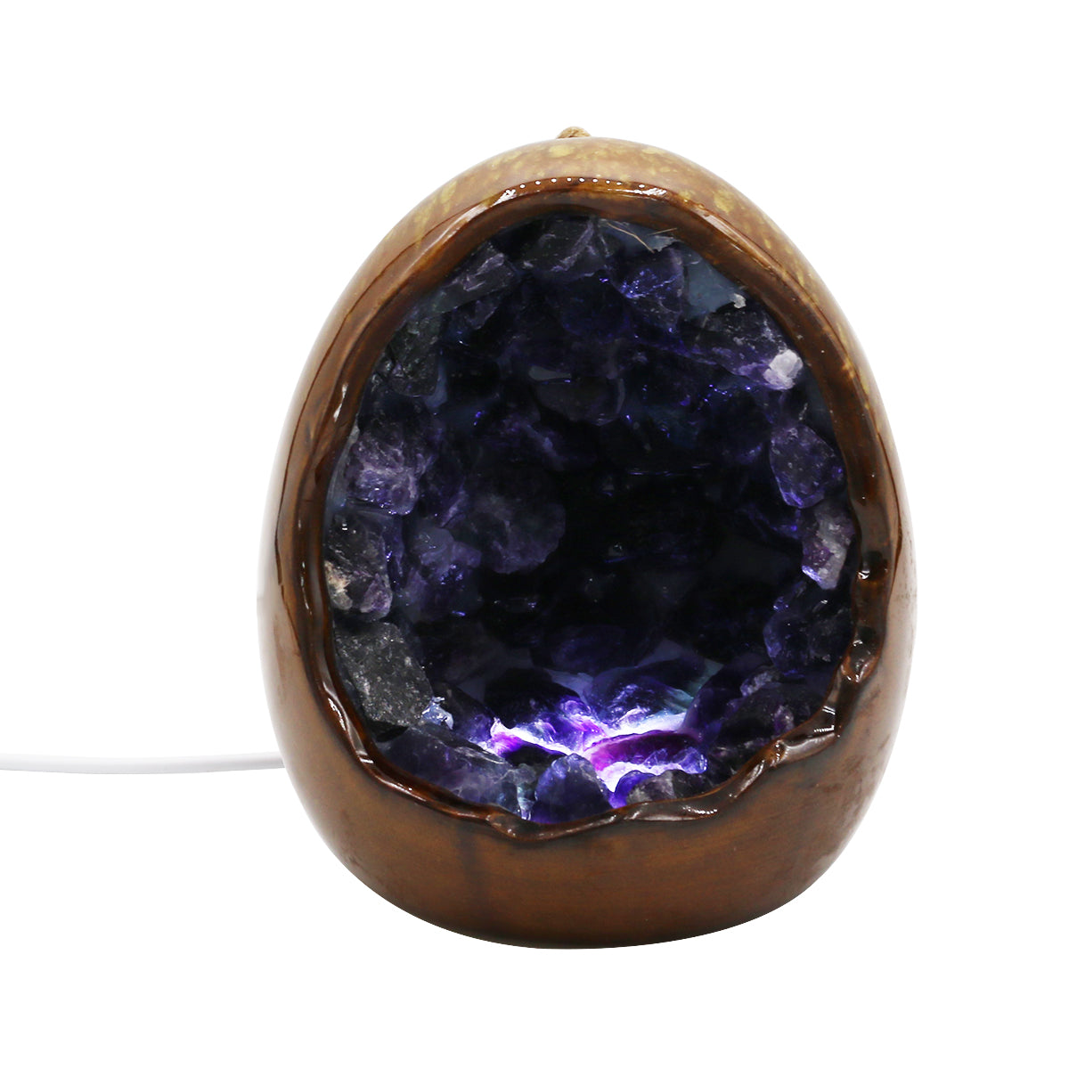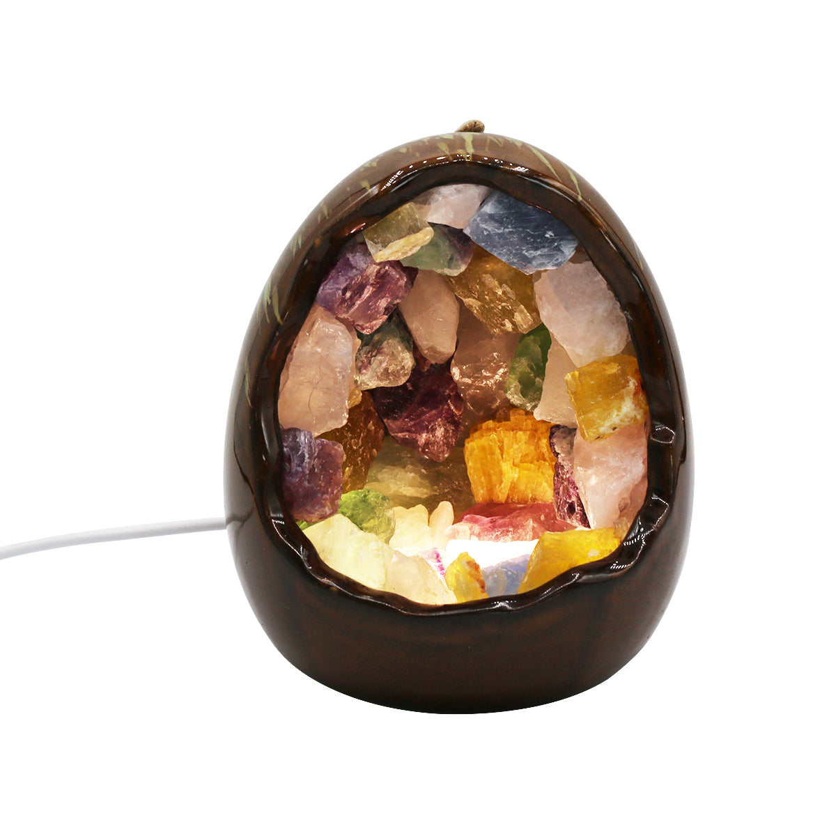 Purple Fluorite and Mixed stone egg shape lamp with a USB cable