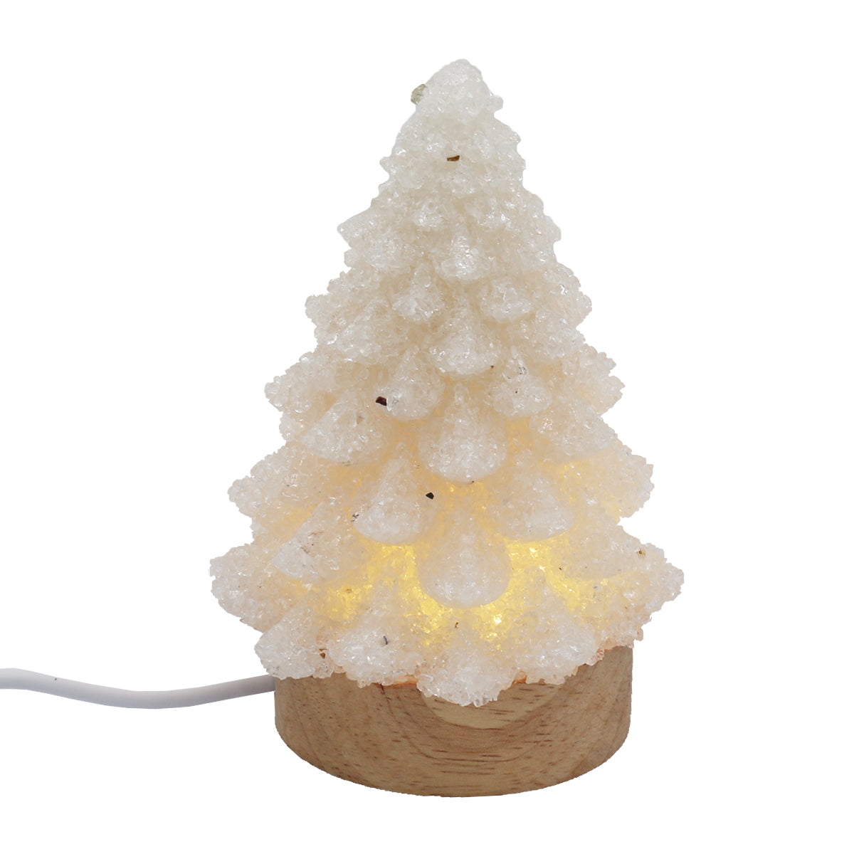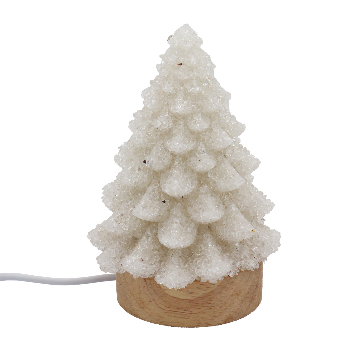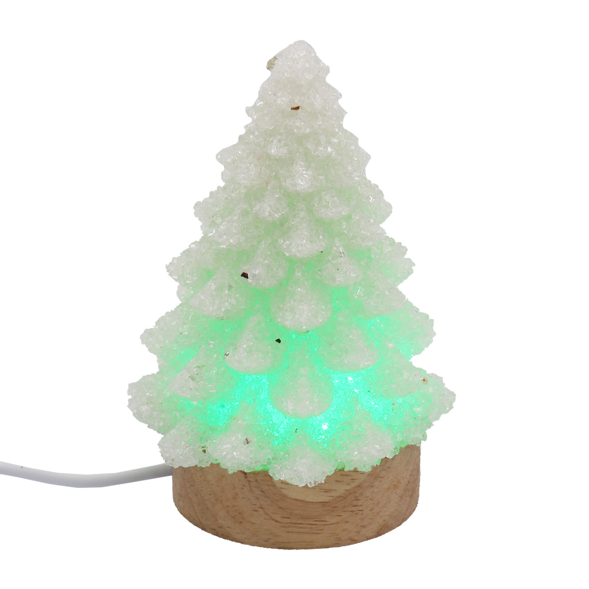 Rock Quartz gemstone chips Christmas Tree wood base lamp with multi-color light , with a USB cable . size in 3" wide, 4.5" high. with the lights on or off, the mini Christmas tree is a good ornament to the room