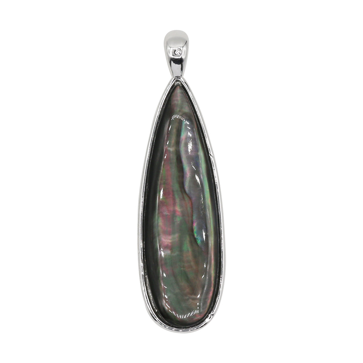 Abalone Paua and black mother of pearl teardrop pendant with gold color metal, 0.27inch wide, 1.92inch tall