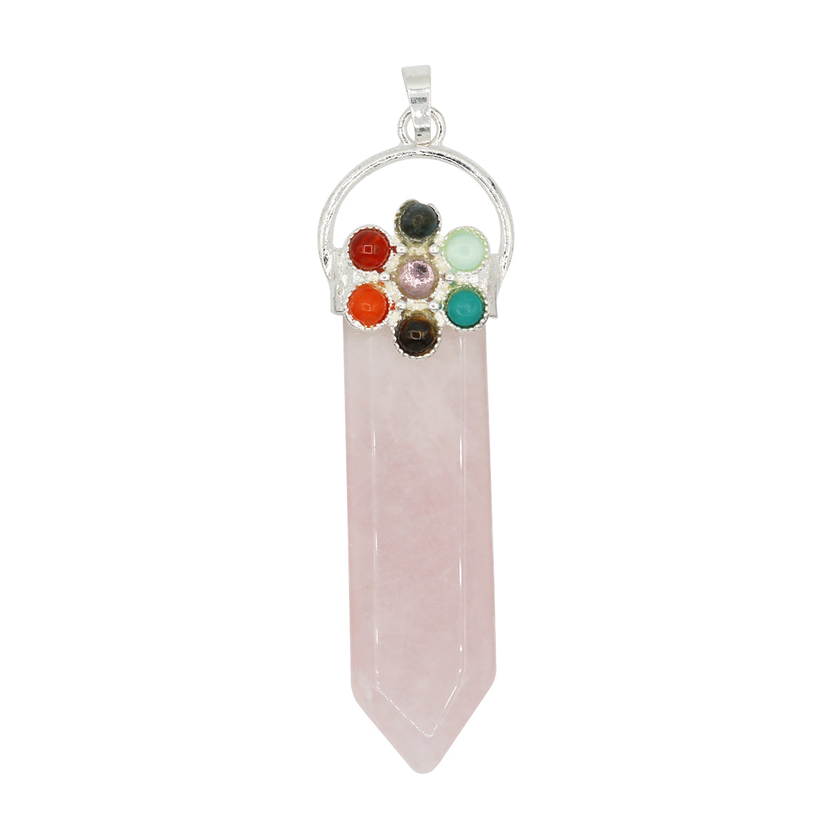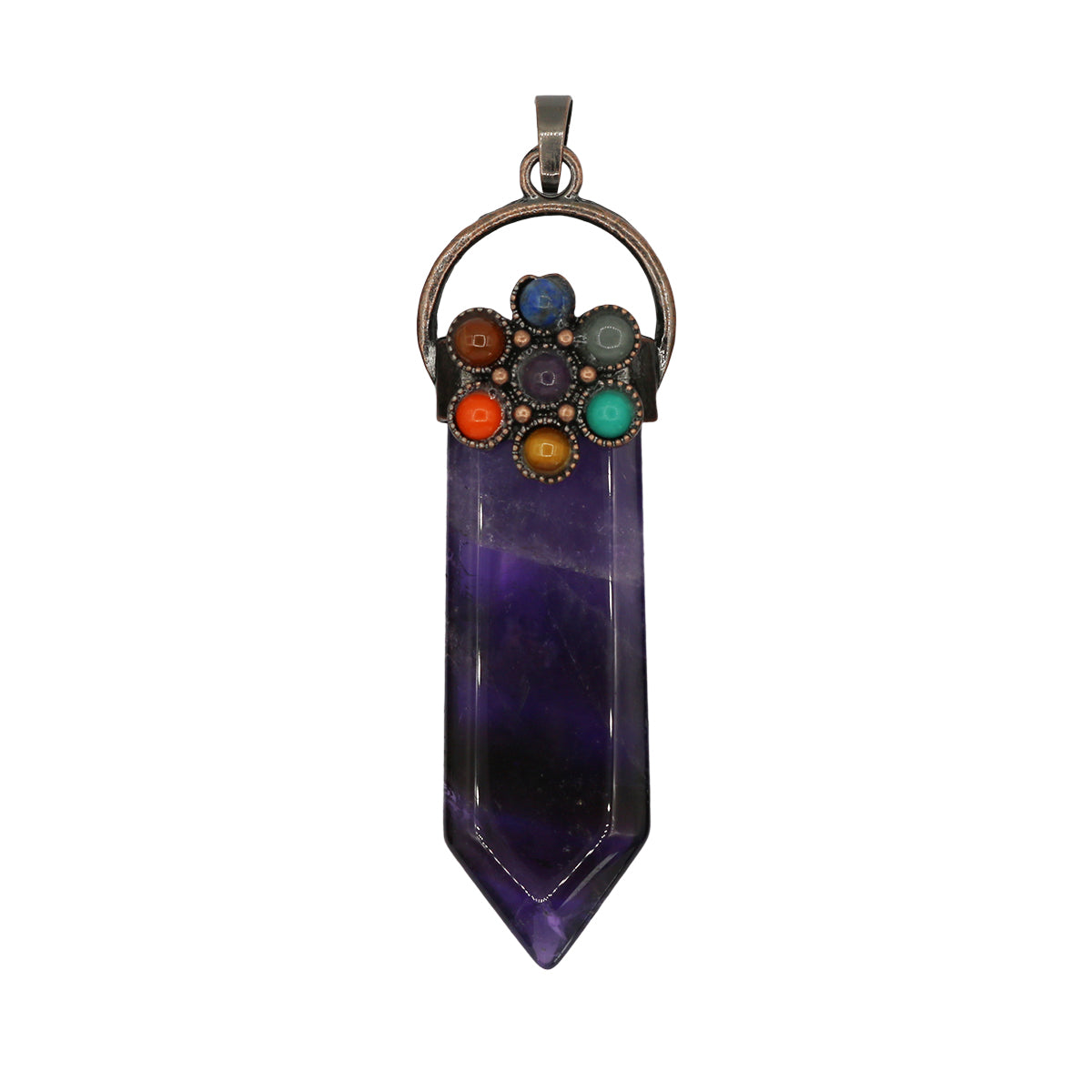 Rose quartz/tiger eye/black agate /amethyst gemstone flat point 7 chakra pendant with silver and copper color metal